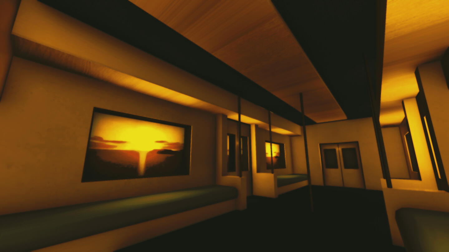 Limau Nipis asked for a modern train carriage so naturally this would be the smallest build I've made so far. A very utilitarian approach with yellow lighting for sunset. The view is different on each side for photo taking.